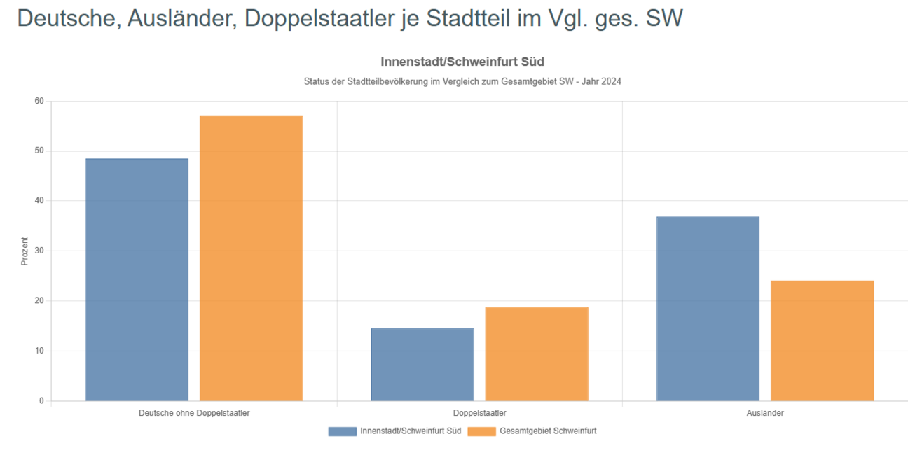 Die meisten Bürger mit Migrationshintergrund wohnen in Schweinfurt im Bergl, in der in der Innenstadt und dem Musikerviertel.